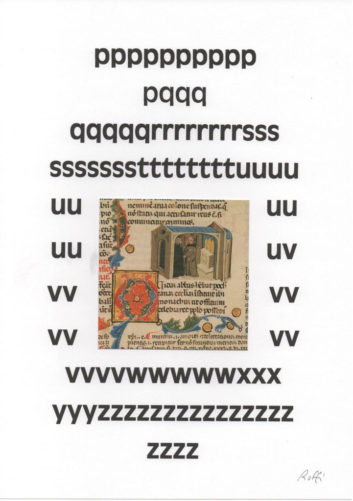 Le “Icone” propongono un accostamento fra la nostra scrittura a stampa e quella degli antichi codici miniati, un incontro nel quale l’indecifrabilità e l’insignificanza dei segni alfabetici si confrontano con il mistero dei testi latini e la suggestione delle immagini.